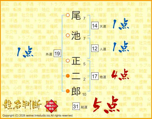尾(7画)池(7画) 正(5画)二(2画)郎(10画)