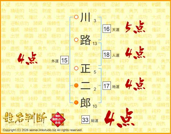 川路正二郎さんの総運は33画の4点!
