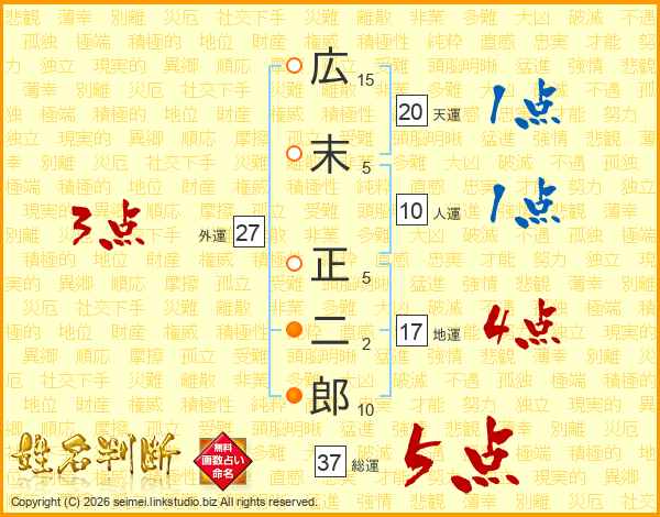 広(15画)末(5画) 正(5画)二(2画)郎(10画)