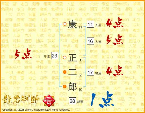 康正二郎さんの総運は28画の1点!