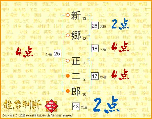 新郷正二郎さんの天運は26画の2点!