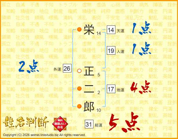 栄正二郎さんの総運は31画の5点!