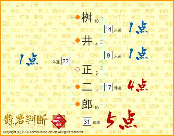 桝(10画)井(4画) 正(5画)二(2画)郎(10画)