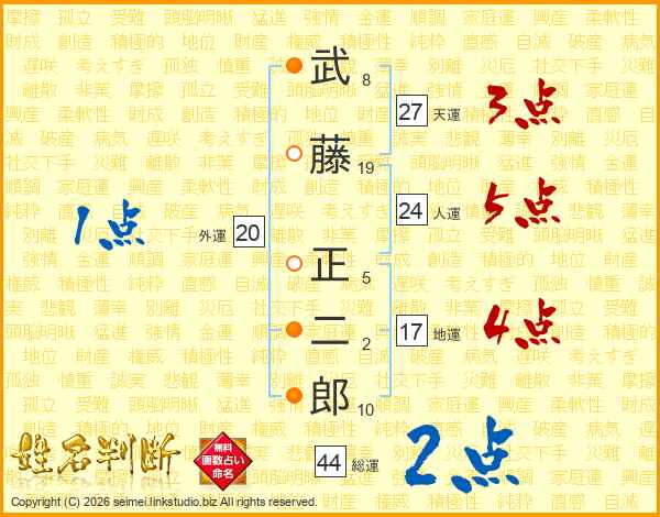 武藤正二郎さんの総運は44画の2点!