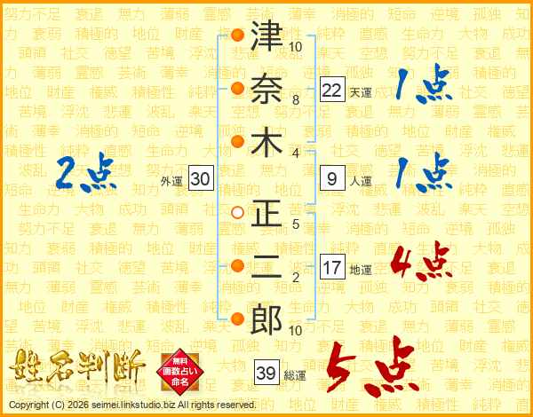 津奈木正二郎さんの総運は39画の5点!