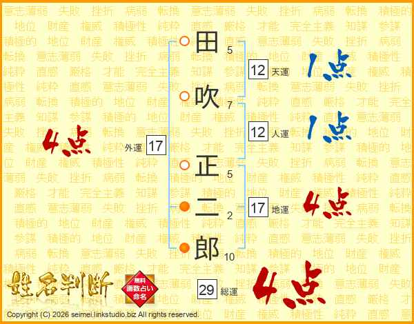 田吹正二郎さんの外運は17画の4点!