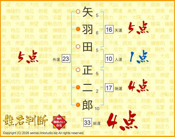 矢羽田正二郎さんの総運は33画の4点!