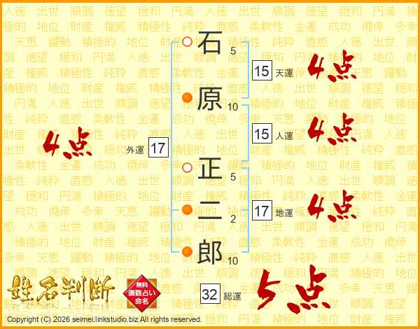 石原正二郎さんの総運は32画の5点!