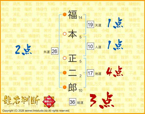 福本正二郎さんの天運は19画の1点!