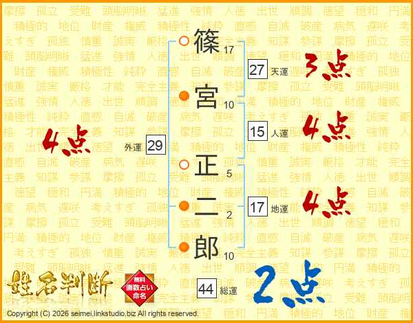 篠(17画)宮(10画) 正(5画)二(2画)郎(10画)
