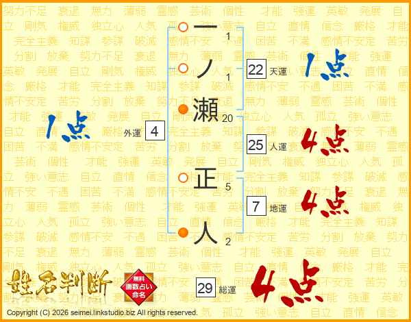 一ノ瀬正人さんの人運は25画の4点!