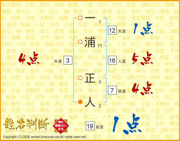 一浦正人さんの総運は19画の1点!