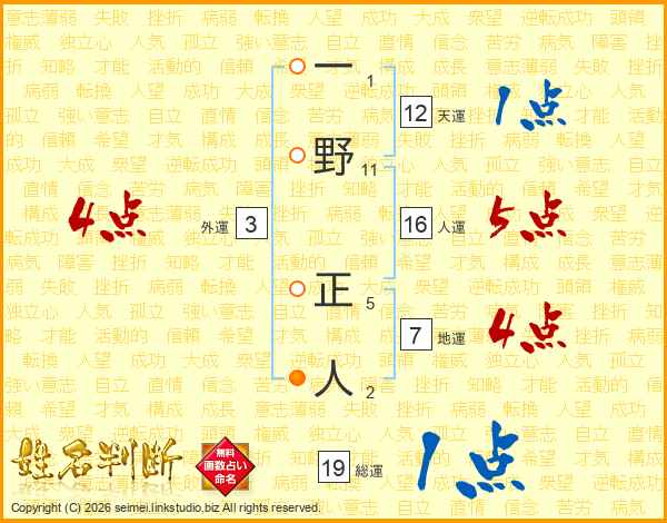 一野正人さんの総運は19画の1点!