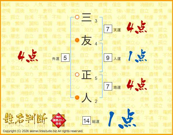 三友正人さんの総運は14画の1点!