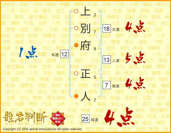 上別府正人さんの総運は25画の4点!