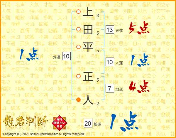 上(3画)田(5画)平(5画) 正(5画)人(2画)