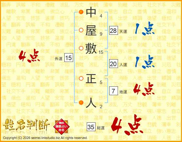 中屋敷正人さんの総運は35画の4点!
