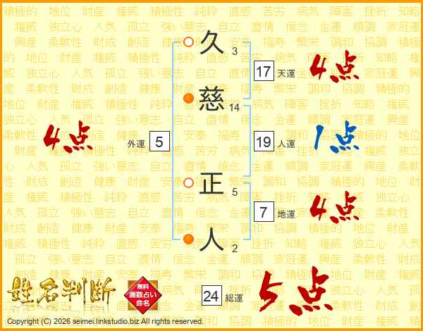 久(3画)慈(14画) 正(5画)人(2画)