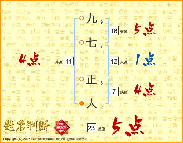 九七正人さんの総運は23画の5点!