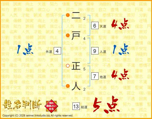 二戸正人さんの総運は13画の5点!