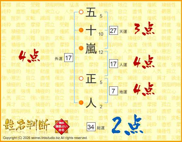 五十嵐正人さんの外運は17画の4点!