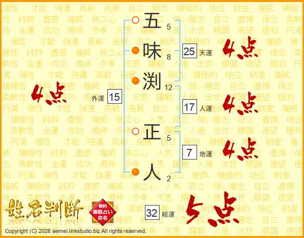 五(5画)味(8画)渕(12画) 正(5画)人(2画)