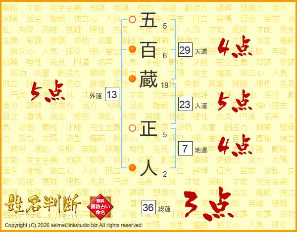五百蔵正人さんの外運は13画の5点!