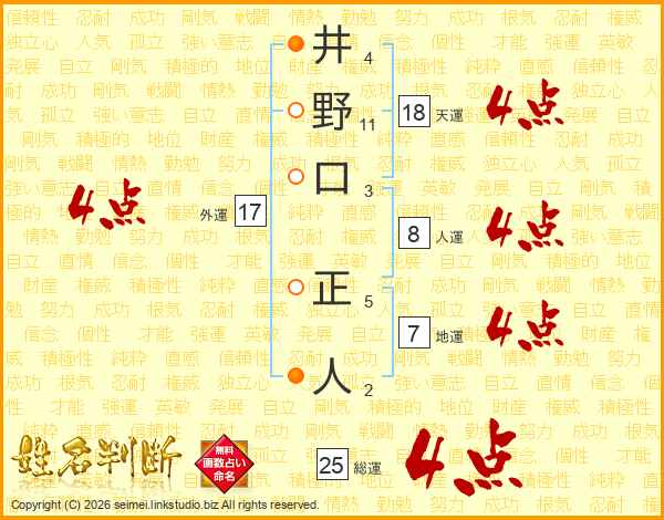 井野口正人さんの総運は25画の4点!