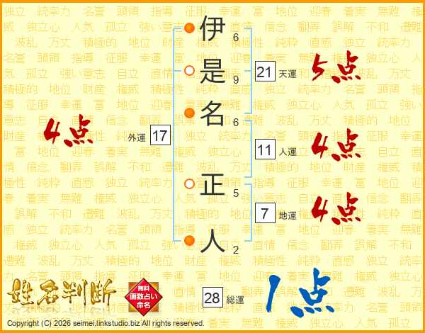 伊是名正人さんの総運は28画の1点!