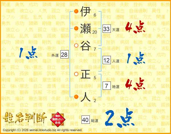 伊瀬谷正人さんの総運は40画の2点!