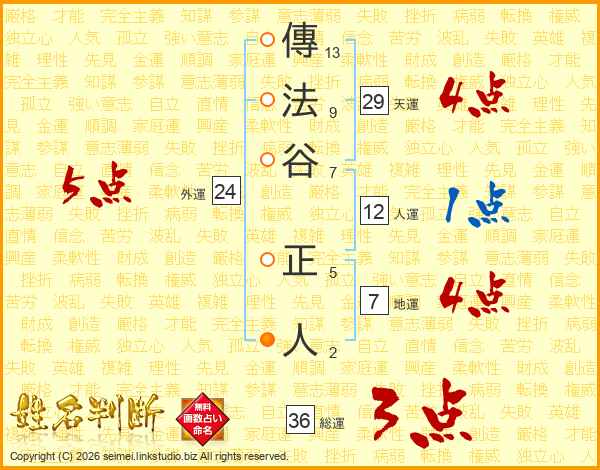 傳法谷正人さんの人運は12画の1点!