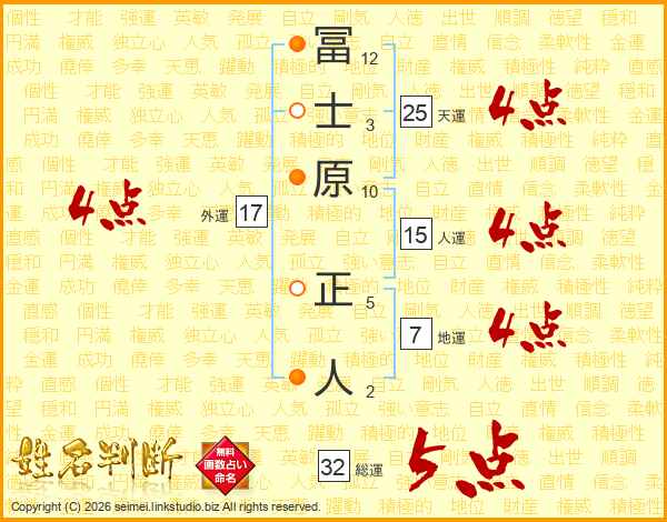 冨士原正人さんの総運は32画の5点!