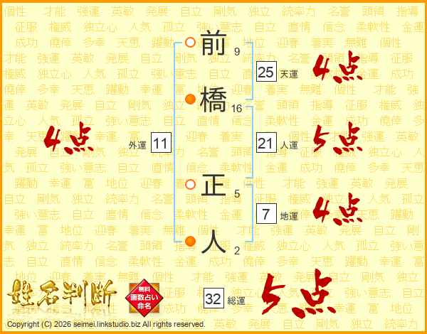 前橋正人さんの総運は32画の5点!