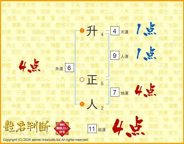 升正人さんの総運は11画の4点!