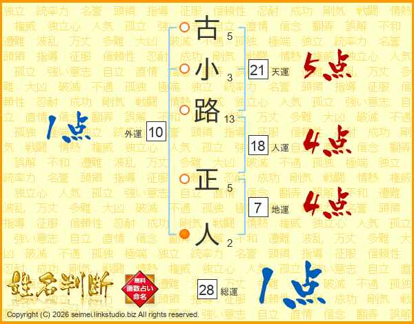 古小路正人さんの天運は21画の5点!