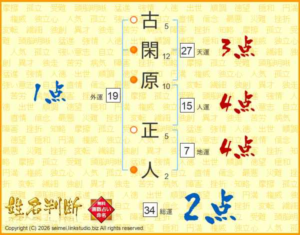 古閑原正人さんの地運は7画の4点!