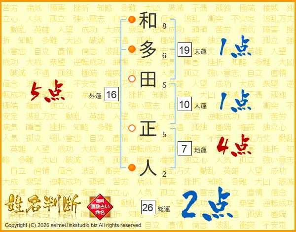 和多田正人さんの総運は26画の2点!