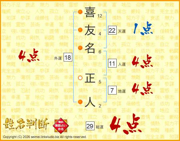 喜友名正人さんの総運は29画の4点!