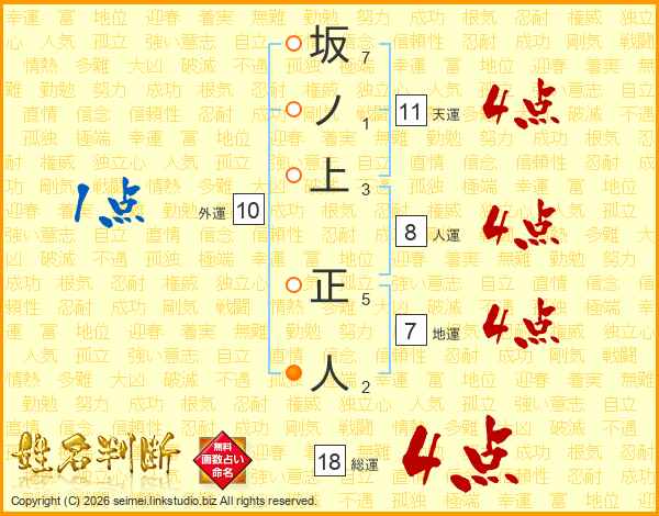 坂ノ上正人さんの天運は11画の4点!
