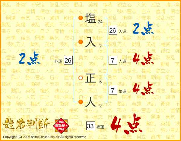 塩入正人さんの総運は33画の4点!