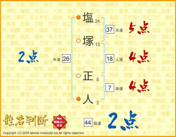 塩塚正人さんの総運は44画の2点!