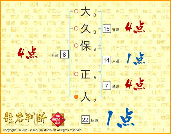 大(3画)久(3画)保(9画) 正(5画)人(2画)