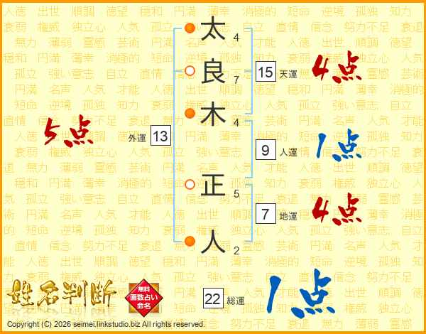 太良木正人さんの総運は22画の1点!