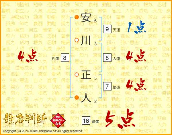 安川正人さんの総運は16画の5点!