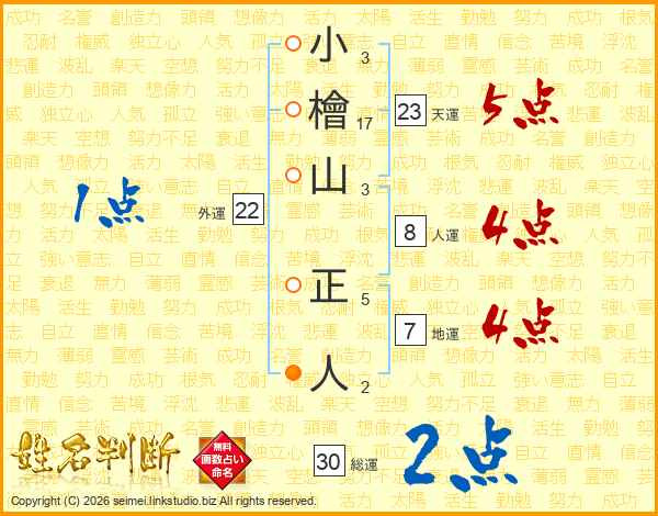 小(3画)檜(17画)山(3画) 正(5画)人(2画)
