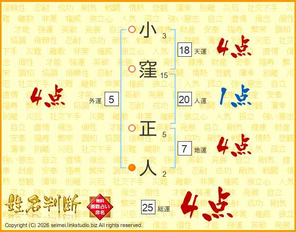 小窪正人さんの総運は25画の4点!