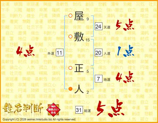 屋敷正人さんの総運は31画の5点!