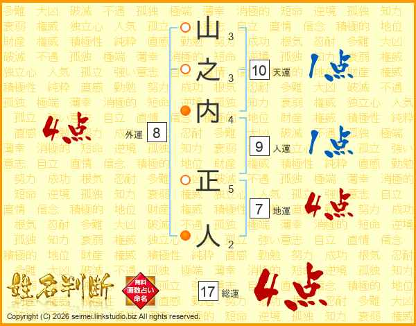 山之内正人さんの総運は17画の4点!