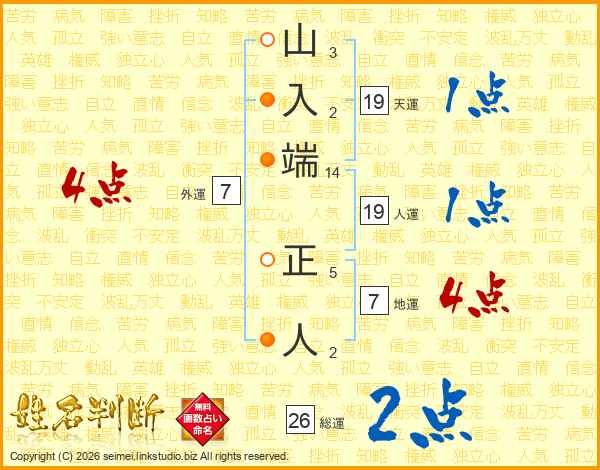 山入端正人さんの総運は26画の2点!