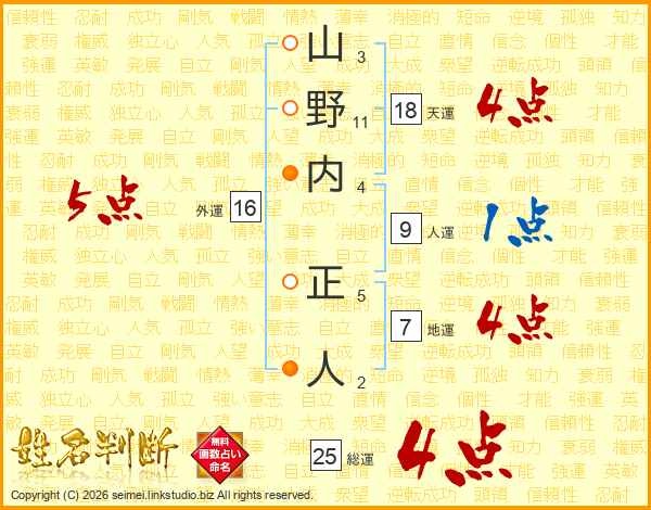 山(3画)野(11画)内(4画) 正(5画)人(2画)